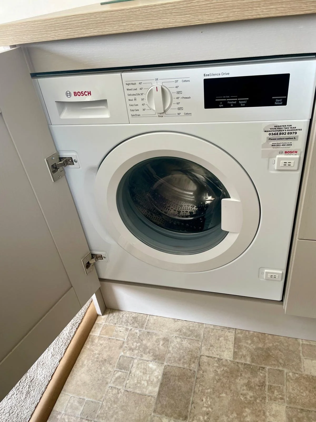 The open-plan kitchen and living space is designed for easy, comfortable living with a touch of luxury. The kitchen is fully equipped with everything you need — from an integral fridge freezer and Bosch dishwasher to a Bosch washing machine — all seamlessly built-in for a modern finish.